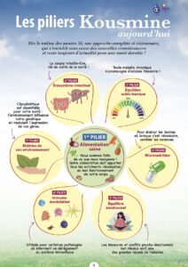 C. Kousmine, quant à elle, fonde son approche globale de la santé sur 5 piliers, dont l’alimentation est le premier pilier :