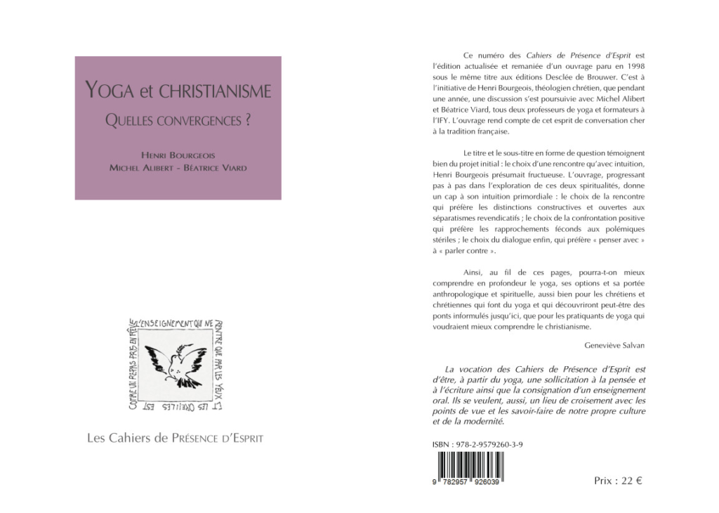 Fruit d’un long travail collectif, le dernier numéro des Cahiers de Présence d’Esprit, « Yoga et christianisme », auquel j’ai activement collaboré, vient de paraître (250 p.). Vous pouvez lire la présentation qui en est faite sur la 4e de couverture ci-dessous.